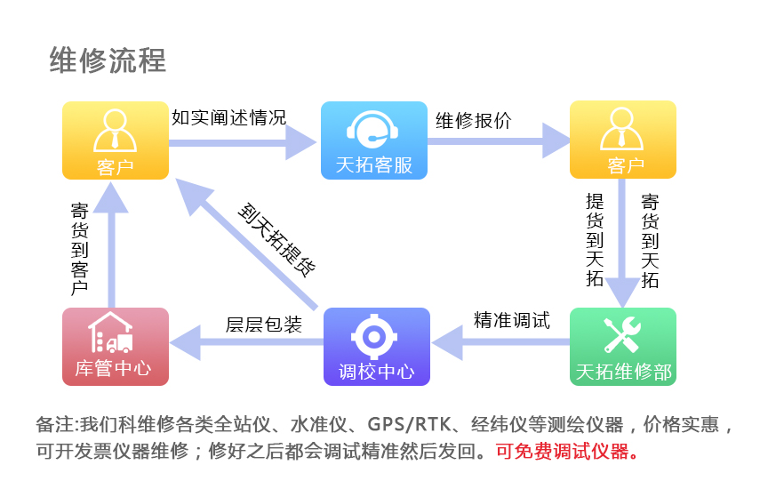 3.对所提供的全站仪主机、GPS主机、手簿、天线等产品提供至少壹年的免费保修服务(非人为损坏,有的产品厂家保修时间更长的,以厂家的保修卡为准),配件保修半年。